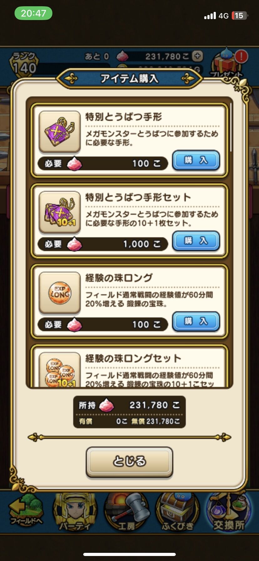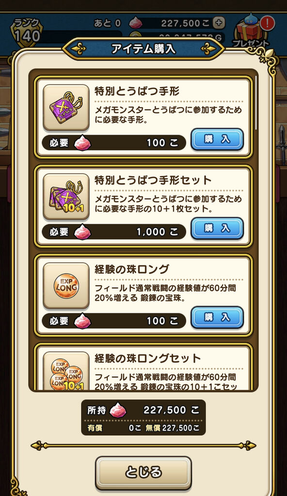 ジェムがもう少し多くて真魔剛竜剣の代わりに肉球と鎧魔槍がある以外3周年以降完全一致かも