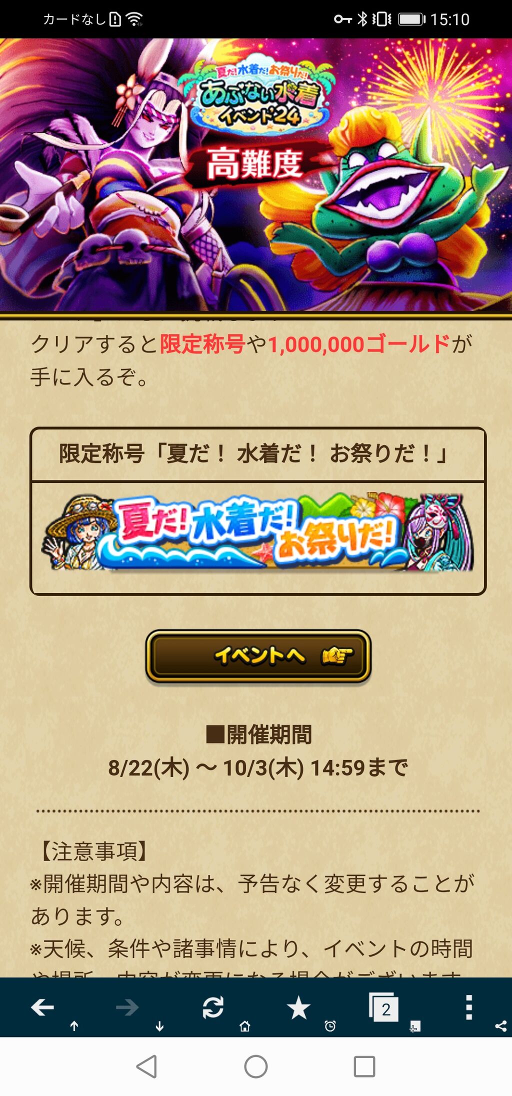 『夏だ!水着だ!お祭りだ! あぶない水着イベント'24』のエンディングを見ることができるクエストが開催中です。
