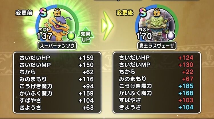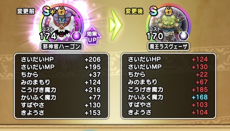ムーチョは回復攻撃の高い方参照するから両方上がっても意味ないんよね